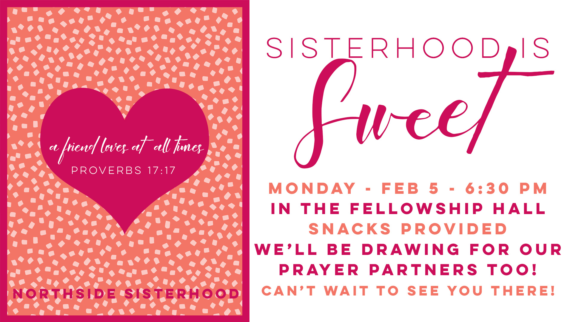 Sisterhood is SWEET! Hey Sisterhood--Join us October 9th in the fellowship hall! Coffee and treats will be provided! We can't wait to spend the evening with YOU!